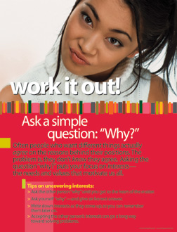 Students can’t agree? Then tell them to work it out—with the help of this six-piece poster series. It neatly summarizes the conflict resolution process and gives ample tips on how to implement it, step by step. A Cambridge Educational Product.
